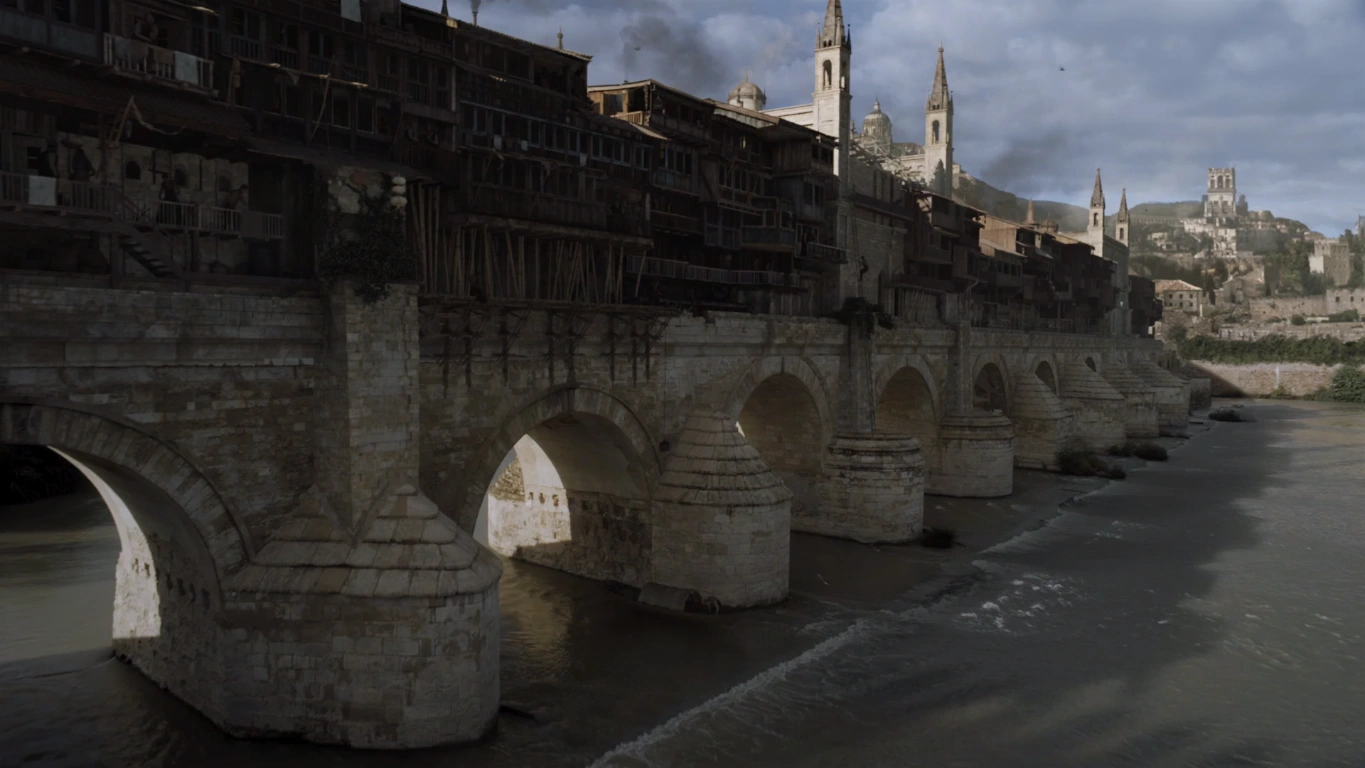 Op de oostoever ligt de oude stad dat beschermd wordt door Zwarte Muren en waar slechts mensen van het Oude Bloed wonen en mogen komen en is een waar labyrint van paleizen, binnenplaatsen, torens en tempels. Op de westoever bevind zich de stad waar de vrije mensen en de slaven wonen. De slaven van de stad zijn in de meerderheid met een verhouding van vijf tot een.[3]